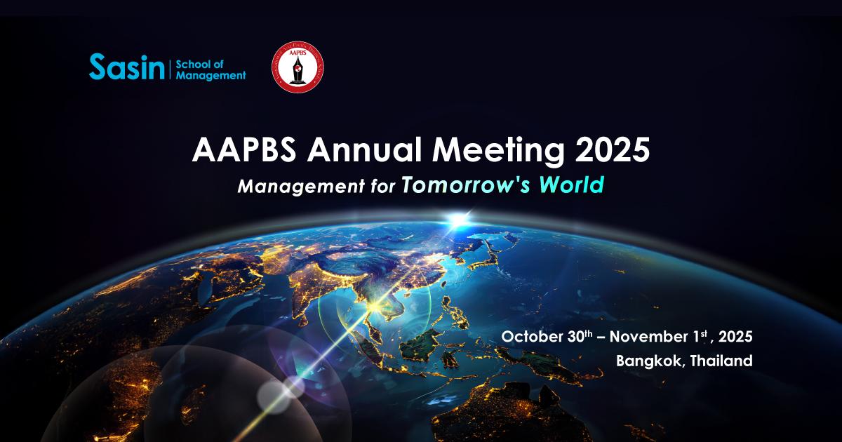 Sasin School of Management is proud to host the 2025 AAPBS Annual Conference in Bangkok. Under the theme “Tomorrow’s Management in Southeast Asia,” this year’s meeting will bring together leaders, academics, and corporate executives from across the Asia-Pacific to explore the region’s evolving business landscape and its impact on management education. Date: October 30 – November 1, 2025 Venue: Sasin School of ManagementConference Highlights