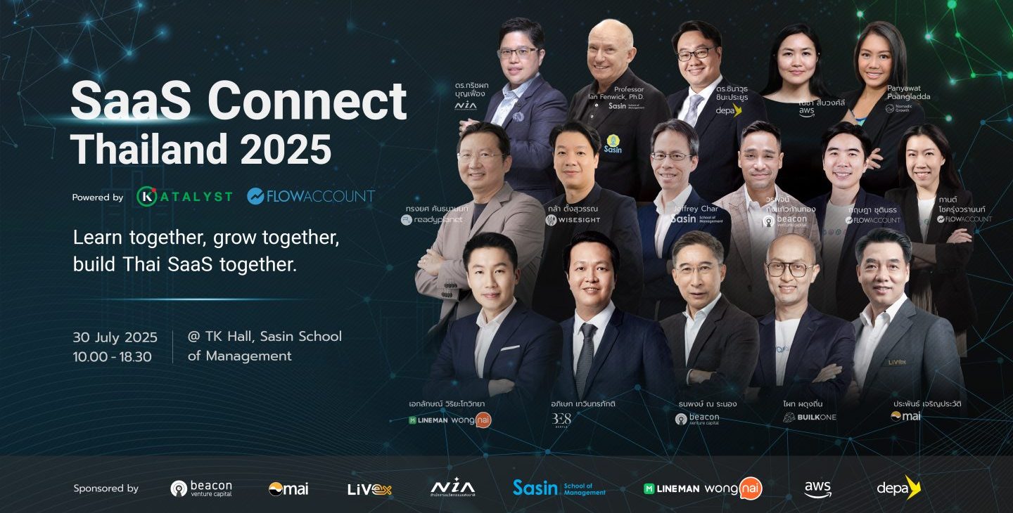 Sasin School of Management recognizes the importance of advancing Thailand’s SaaS ecosystem in the digital era. As part of our commitment to Inspire, Connect, Transform, we invite our Sasin network with SaaS-related businesses to join: “SaaS Connect Thailand 2025” Powered by KATALYST and FlowAccount, this premier gathering brings together founders, executives, and investors who are shaping Thailand’s SaaS landscape.
