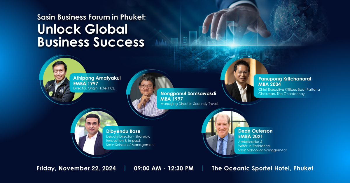 Accelerate your career goals with Sasin School of Management at the Sasin Business Forum in Phuket, where top industry experts and inspiring Sasin alumni share insights on expanding your business and seizing global opportunities.