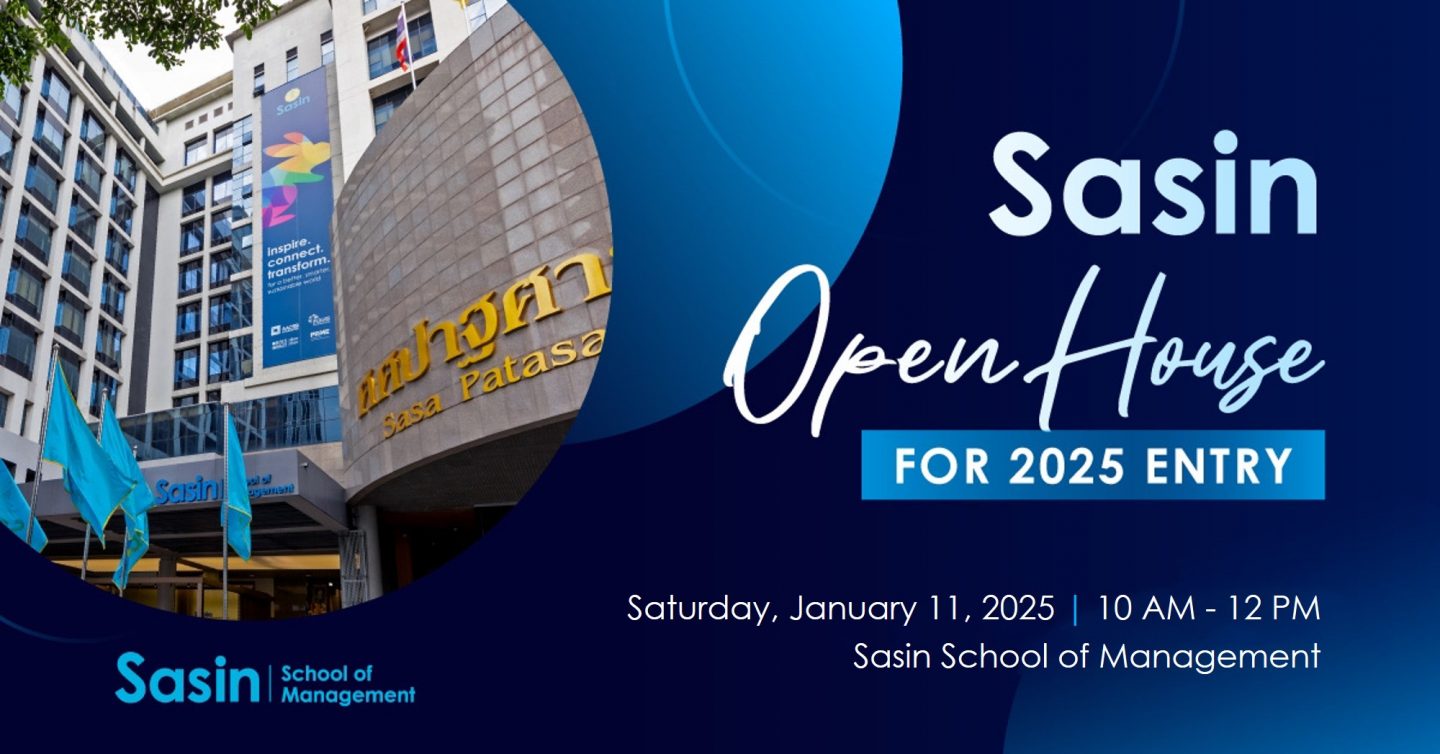 Are you considering making 2025 the year you kickstart your journey at Sasin? Join us at Sasin Open House on Saturday, January 11, 2025, from 10:00 am – 12:00 pm, at Sasin School of Management.