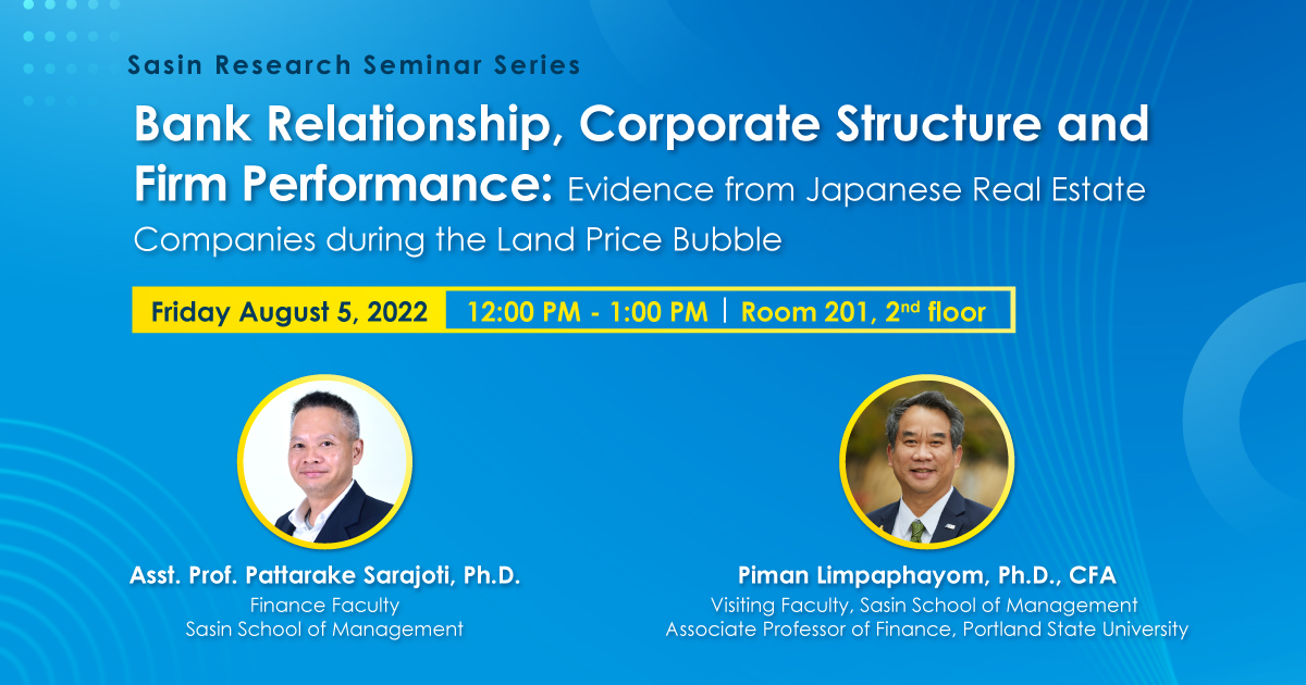 Sasin Research Seminar - Bank Relationship, Corporate Structure and Firm Performance: Evidence from Japanese Real Estate Companies during the Land Price Bubble