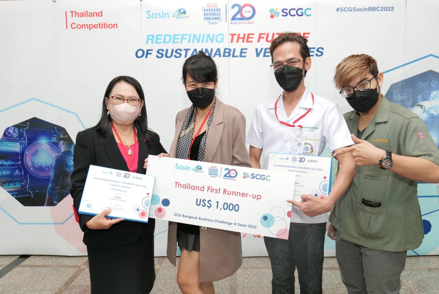 The Defire team from the Asian Institute of Technology (AIT) is the winner of the Thailand Competition Round and received a cash prize of US$ 3,000 (approximately THB 100,000) and is qualified to compete in the Global Competition stage. The first runner-up of the Thailand Competition Round is the YaBez team from Pathumthani University. The winner of the 60-Second Pitch contest is the Shrimpney team from Mahidol University. This year’s SCG Bangkok Business Challenge featured a total of 113 teams from 17 universities across the country. The final round recently took place at Sasin School of Management on March 27, 2022.