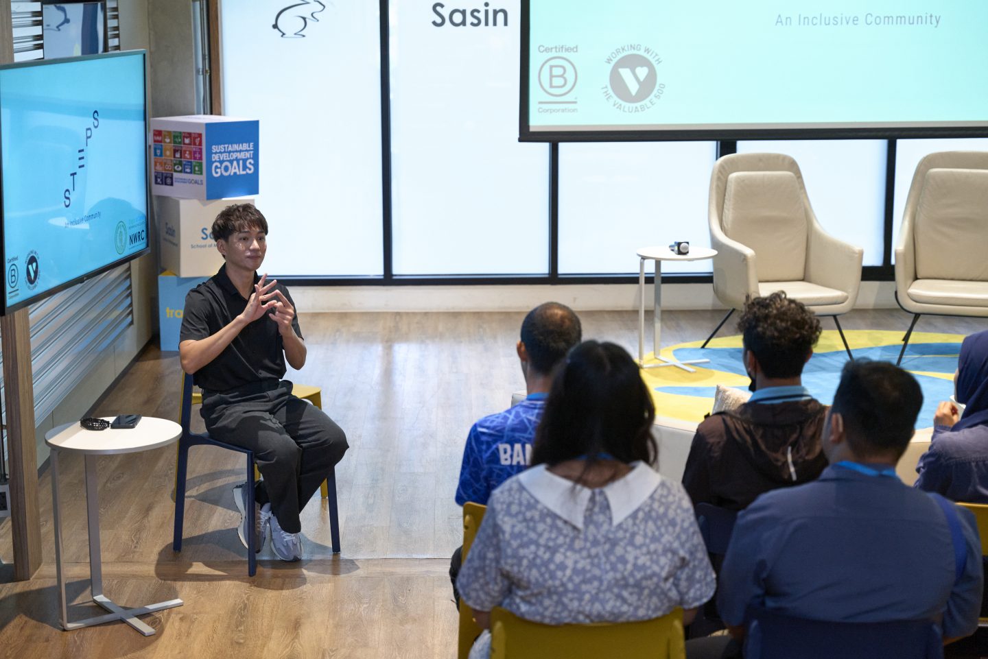 This focus group involved 102 employed individuals, including people with disabilities and neurodivergent individuals, from 50 of BMA’s district offices. Held at Sasin on August 14, the event aimed to better understand and improve working conditions, thereby increasing access to meaningful employment opportunities. Steps also trained volunteers, including Sasin students and staff, to safely facilitate the movement of interviewees around the building.