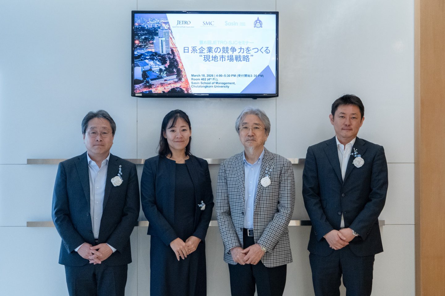 The Sasin Management Consulting (SMC) Japan Center at Sasin School of Management co-hosted the 6th Joint Seminar with Japan External Trade Organization (JETRO) Bangkok Office on March 18, 2026. Held under the theme “Local Market Strategy for Enhancing the Competitiveness of Japanese Firms — New Trends in Strategy and Marketing Localization,” the seminar brought together academic and industry perspectives to explore practical approaches for Japanese companies seeking sustainable competitive advantage in Thailand and other international markets. Amid intensifying global competition and increasingly diverse consumer needs, companies must move beyond simply exporting products or expanding overseas. Success today depends on developing market-specific strategies and advancing sophisticated marketing localization. The seminar addressed these challenges by sharing the latest insights from both research and business practice. The session opened with welcoming remarks by Makiko Yamazaki, Vice President of the JETRO Bangkok Office. The keynote lecture was delivered by Junichi Muramatsu, Professor Emeritus at Hiroshima University and Professor at Gifu Shotoku Gakuen University. He introduced the concept of “value co-creation marketing,” highlighting how collaboration with customers and partners can strengthen adaptability in local markets—an idea that resonated strongly with participants. From an industry perspective, Yoichiro So, General Manager at Kobe Steel, Ltd., shared insights into the company’s involvement in a research project led by Professor Muramatsu’s team. He discussed key initiatives, challenges, and practical considerations in local market engagement. In addition, Takamasa Fujioka, Advisor to the SMC Japan Center and Professor at Meiji University, presented a case study on the localization strategies of a major Japanese housing manufacturer in Thailand, offering valuable insights into implementation and success factors. The seminar welcomed approximately 50 participants, including executives and expatriates from Japanese companies in Thailand, as well as government officials, consultants, and academics. The event concluded with an engaging Q&A session and lively discussions among participants.Share this article