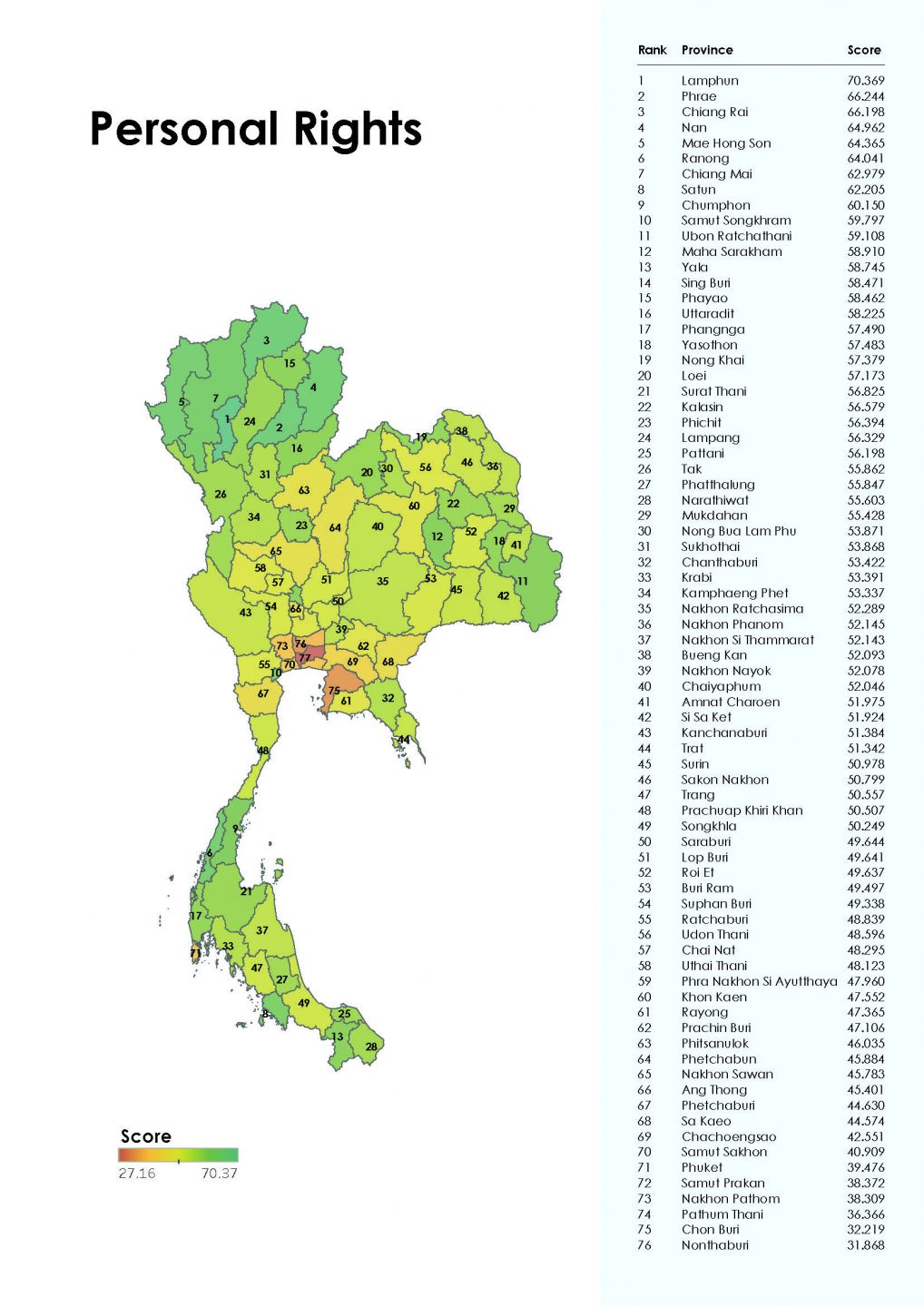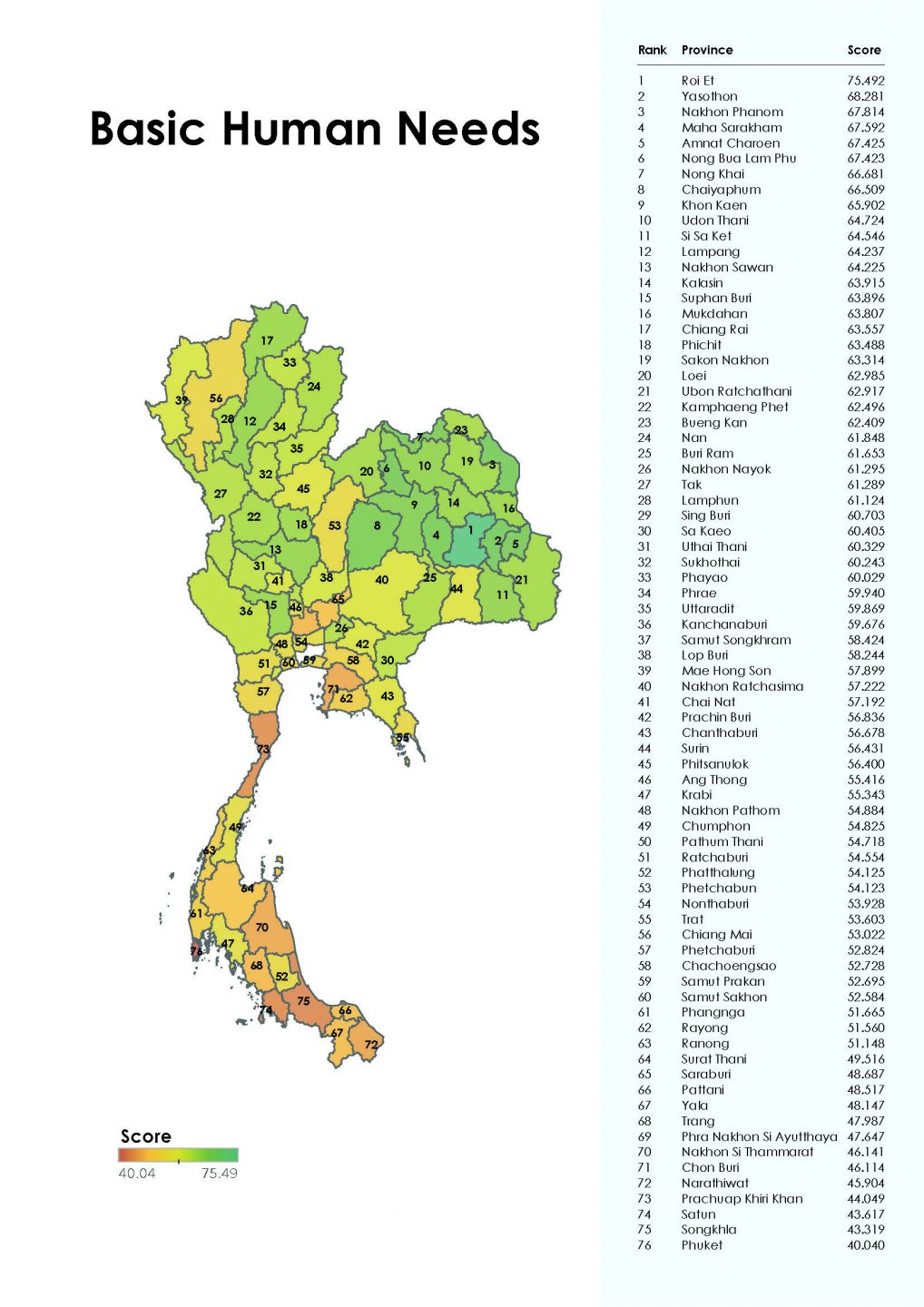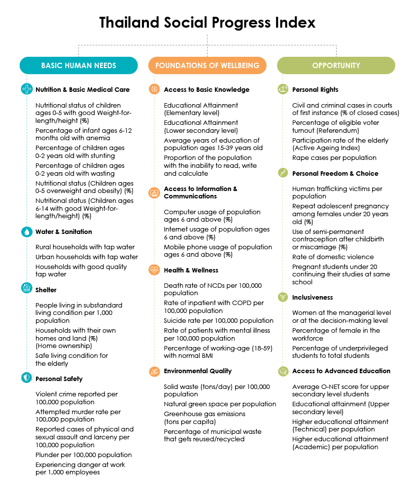 The development of the Social Progress Index (SPI) for Thailand’s provinces aims to measure the lived experience of Thai people throughout the country. It is designed to capture how well the primary issues of society are catered for and includes health, safety, shelter, education, rights, and freedom.